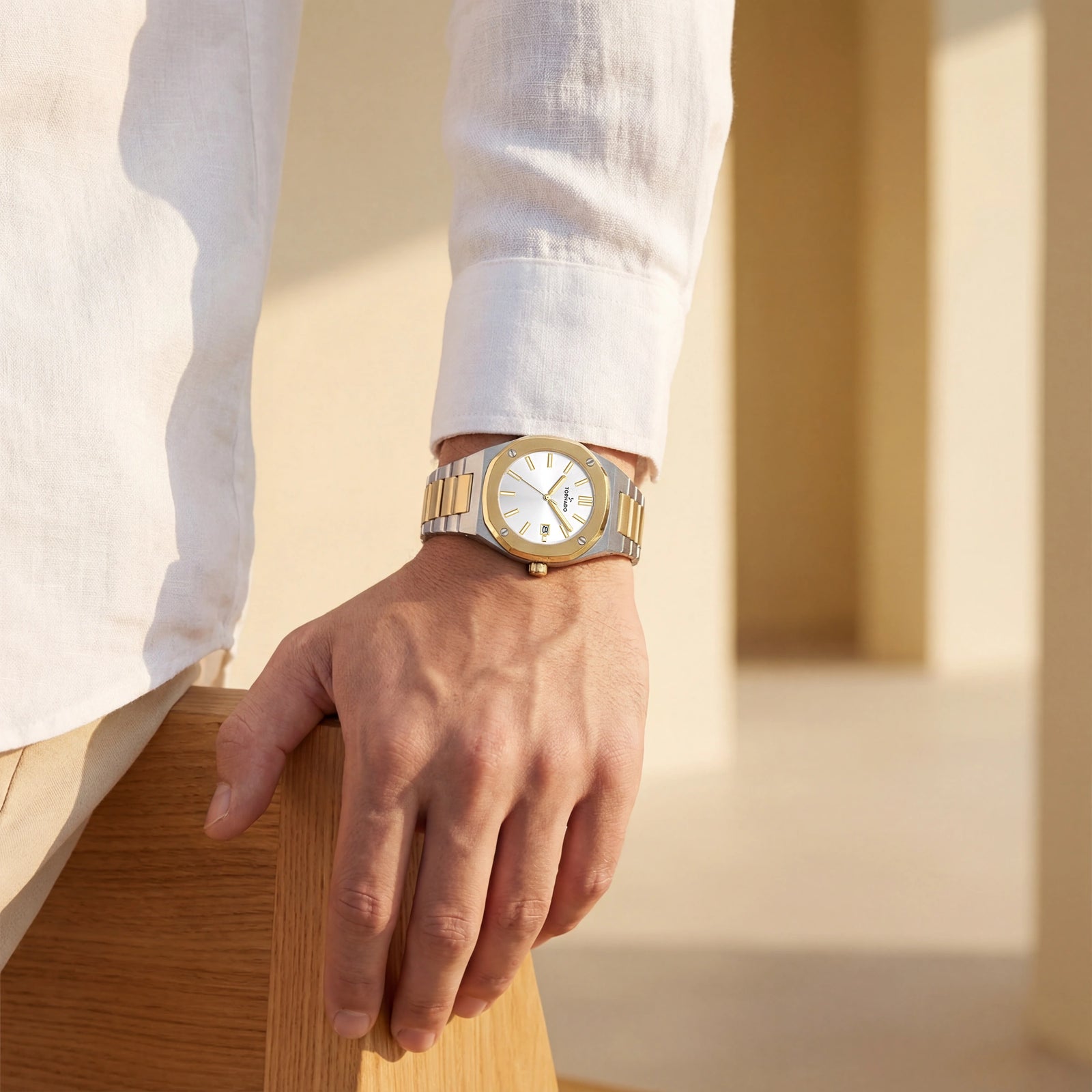 The T23003 TBTW is the watch you wear when the day matters. The mix of gold and silver stainless steel instantly reads as polished and confident, whether it’s peeking from under a navy suit at the office or paired with a tux at a wedding. The smooth octagonal bezel and 42mm brushed case keep the design sharp, while the two-tone 316L solid stainless steel bracelet with gold center links and polished sides adds real jewelry presence. A hidden butterfly clasp keeps the bracelet clean and secure on the wrist. Inside, the Miyota 2315 Japanese quartz movement, sapphire-coated crystal and 10 ATM water resistance make sure it performs as well as it looks. Packed in a premium Tornado box and backed by a 3-Year warranty, it’s a natural gift watch for promotions, date nights, birthdays, anniversaries, Father’s Day or as a special “for myself” upgrade.