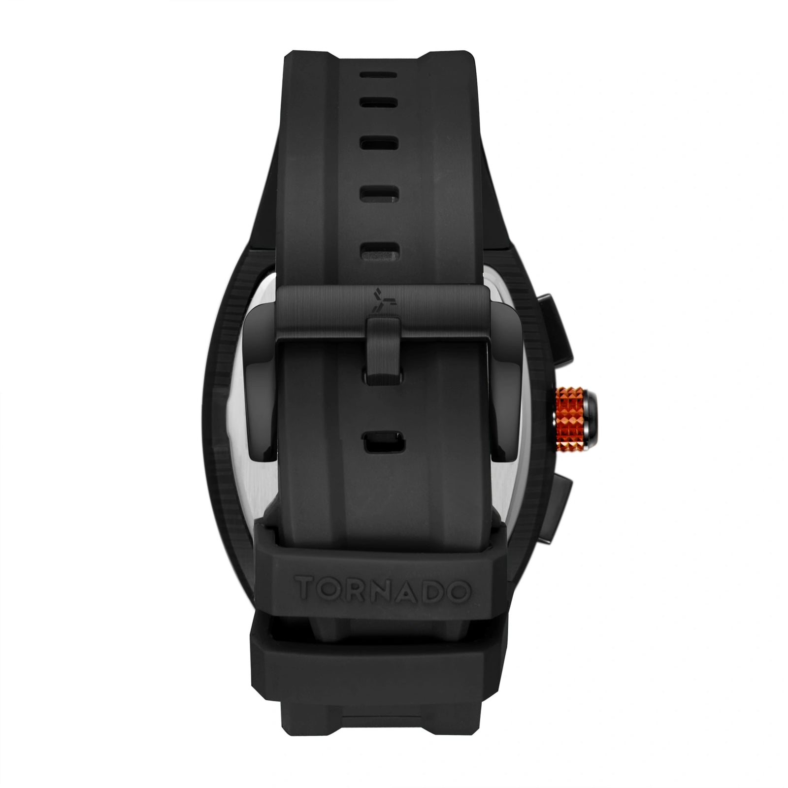 This is an all-black Xenith profile with subtle architectural contrasts. The signature tonneau case crafted from brushed solid stainless steel gives the watch a sleek presence when finished in black. The dial continues the theme, protected by sapphire crystal for enhanced scratch resistance. Inside, the Japanese VX9J movement powers chronograph functions with proven accuracy, making it well suited for everyday wear. A matching black FKM rubber strap provides flexibility and completes the monochrome look. It tapers from 27.5 mm to 22 mm and secures with a tang buckle for a secure, familiar fit. Finished with 10 ATM water resistance and backed by a three-year warranty, this timepiece’s presence can only be defined as subtle but undeniable.