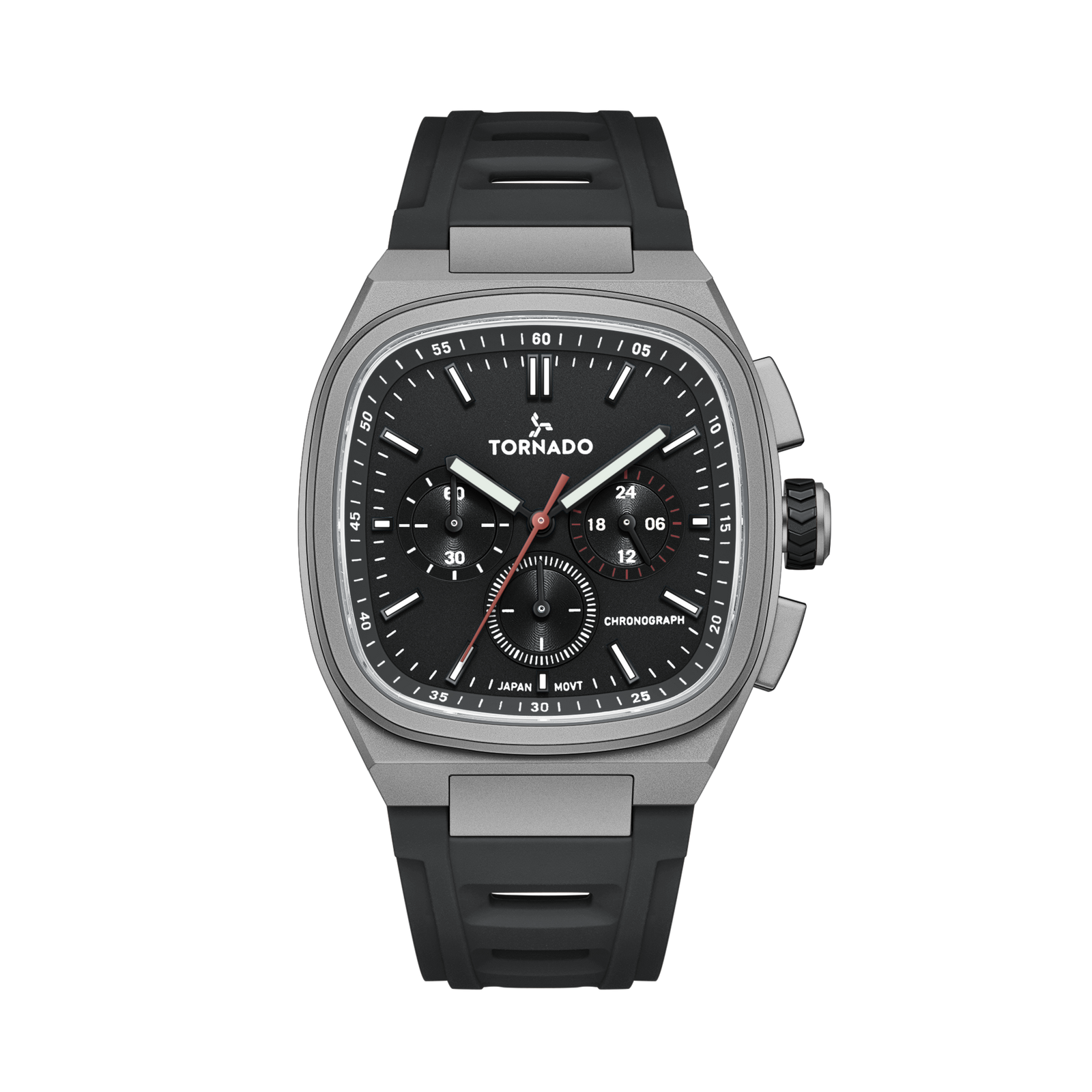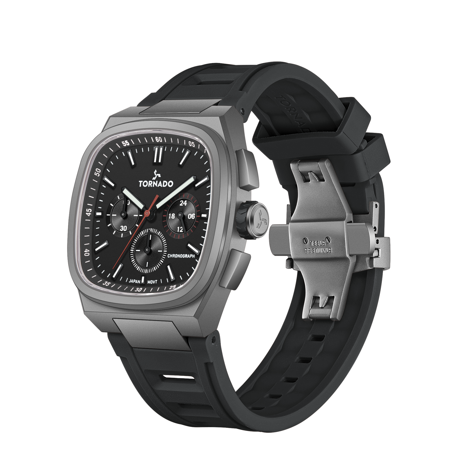 This Aristocrate variant brings a sharp, purposeful aesthetic to a solid mechanical backbone. Its 42 mm gunmetal case is crafted from 316L stainless steel with a sand-blasted finish, reinforced with a scratch-resistant coating. The deep black dial anchors the design, and is protected by Sapphire glass. The black rubber strap complements the buildβs utilitarian look, and secures with a butterfly clasp.